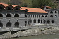 Small structure over water springs, which are still in use, are of special interest among the monastery buildings. Their architectural composition, based on the principle of symmetry, is simple and laconic. These are vaulted premises. rectangular in the plan, with arched openings or the main, longitudinal, facade. The 1831 structure over a water spring in the yard of Sanahin monastery is a single-arched one: a village structure of this kind in Sanahin, dating back to the end of the 12th and the beginning of the 13th century, is twin-arched, and the 1258 structure in Haghpat is triple-arched, with the middle arch larger than the side ones and emphasizing the central axis of the structure. There are stone troughs stretching along the back wall of the structure for watering the village cattle, and also a water reservoir used by local residents. The vaulted composition was prompted by the climate of the country. The cool and damp air inside is a good protection against the scorching midsummer sun. The inner spaces, almost totally open in front, enrich the outer appearance of these purely utilitarian structures.