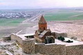 The church of Harutyun, standing on a forest glade, away from the main group, was built by a son of Asan in 1220. This is a small, outwardly rectangular. domed-hall church with a lofty cupola. The only entrance, with a small vestry in front of it, is from the west. As distinct from the ordinary vestries, it has a vaulted ceiling, Ike the 10th-ceutury vestries of Vahanavank and Gndevank monasteries, and is narrower than the church. A distinctive feature of the structure is that it has, on its western facade, twin openings topped with arches which rest on the wall-attached and intermediate columns. This gives the structure the appearance of an open passage. There are many graves in the church which was probably a family burial vault. |  | Khor Virap Monastery Khor Virap is one of the most popular destinations in Armenia for a number of reasons, primarily because it is where Grigor Luisavorich (St. Gregory the Illuminator) was imprisoned for 13 years before curing King Trdat III of a disease. This caused the conversion of the king and Armenia into the first officially Christian nation in the world in the year 301. To this day you can visit the underground chamber he was imprisoned, located in the nondescript St. Gevorg Chapel apart from the main church. Be careful in this building, there are two holes which can be climbed down but are unmarked. There is one smaller chamber by the door which has some stairs and then a twist and a ladder leading to the small room. There is another hole in the main room, to the right of the altar, with a long ladder leading down into the larger cistern where Grigor Luisavorich was imprisoned. It is actually impressive in size for an underground prison cell, and due to candles and a lack of air circulation was very stuffy, much like the other smaller chamber. Even with the candles it is rather useful to have a flashlight. I blew out all of the candles to preserve some oxygen when I went down there.