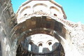 The whole dome stood on massive pylons underneath the wall. The passage from the square under the dome to the base of the octahedral drum was realized through the mediation of the tromps, the remainders of one of which remains in the NE corner of the square under the dome.