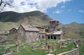 |  | Vorotnavank Monastery A highly recommended route leaves Sisian to the SE following the main road through the village on the E side of the river. The road turns left uphill, and ends at a T junction just past a stop sign. Turn right at the T, and follow the road SE. Just before the village of Aghitu (335 v.), you see on the left the remains of a substantial Muslim cemetery. The village, better known as Aghudi, has a large restored 7th c. funerary monument W of the road. S of the village on a hill are remains of Berdategh ruined castle. There is also a Middle Bronze Age tomb field. From Aghitu, a fork left allegedly climbs to Noravan (482 v., founded 1928), and thence to the main Sisian-Goris highway. Staying on the main road through Aghitu, a few km beyond, take the right fork (left goes to Vaghatin, 388 v., till 1991 Azeri village of Vagudi), which soon provides a splendid view of the Vorotan gorge and Vorotnavank*. This fortified monastery sits, right of the road via a paved driveway about 8.5 km from the stop sign, on a promontory overlooking the Vorotan. The main S. Stepanos church was built in AD 1000 by Queen Shahandukht, and the adjoining S. Karapet church was built in 1007 by her son Sevada. The dome of S. Karapet collapsed in the earthquake of 1931. There are interesting carved gravestones in the cemetery. One of the churches is allegedly good for snakebite. From the monastery, the road winds down to a bridge. Staying on the N side of the river, a road goes to Vorotan (183 v.), with 9-14th c. khachkars and a bridge of 1855 built by Melik Tangi, the Brnakot notable, and thence to Shamb, with hot springs that local Peace Corps volunteers have successfully bathed in during the winter.